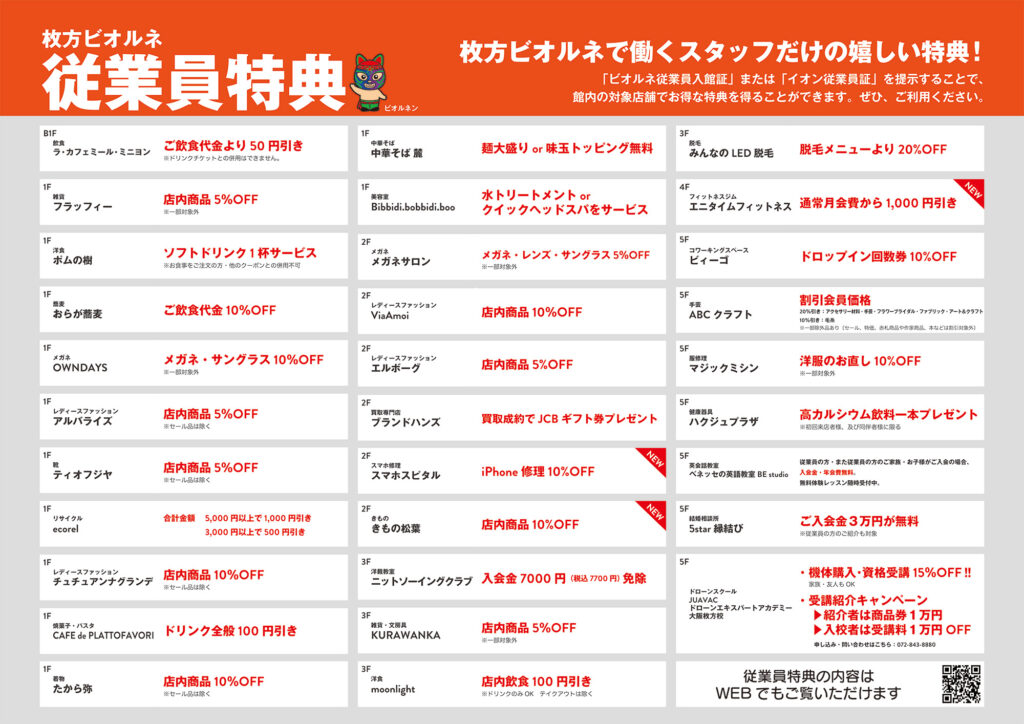 「ビオルネ従業員入館証」または「イオン従業員証」を提示することで、